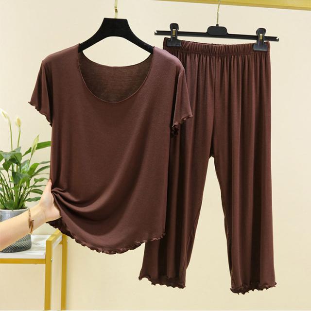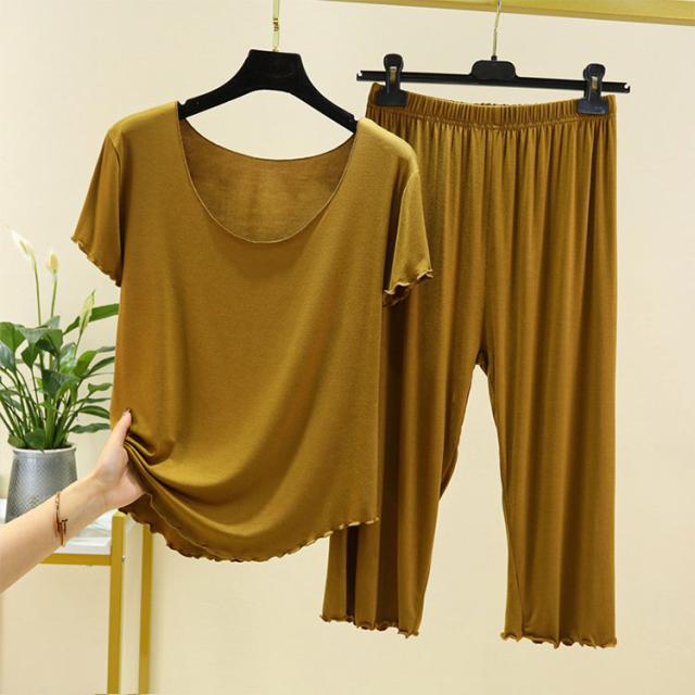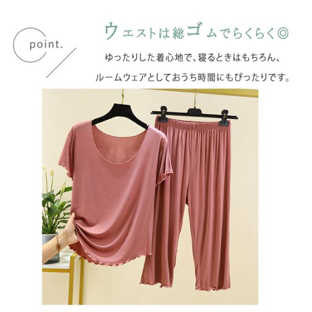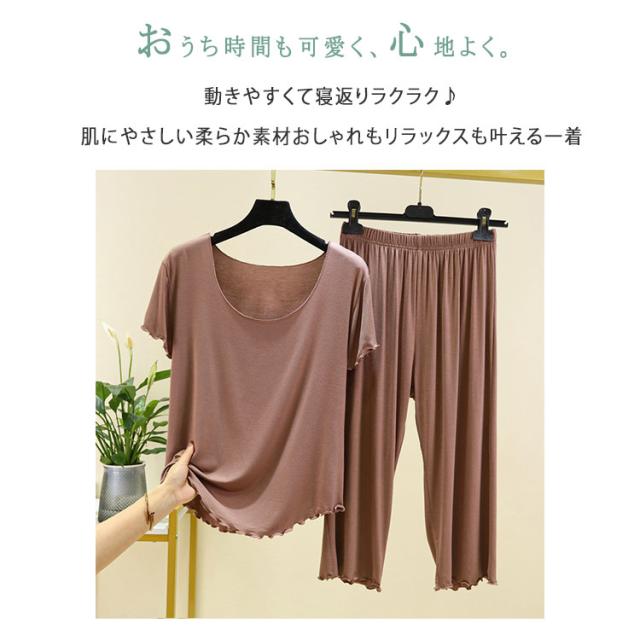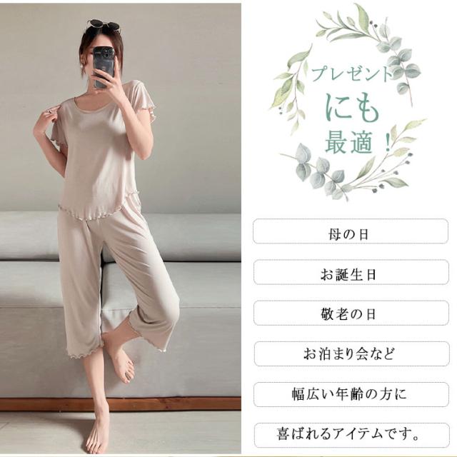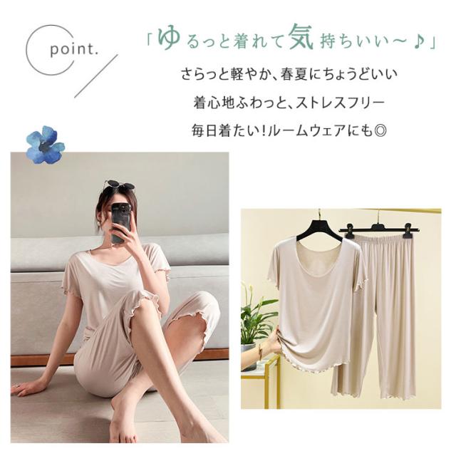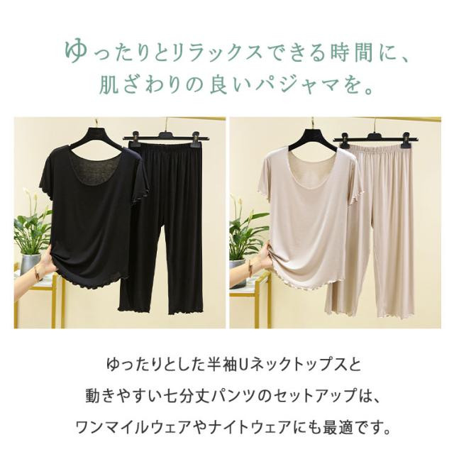 冷感 セットアップ レディース モダール素材 上下セット 半袖トップス 七分丈パンツ Uネック 接触冷感 吸汗速乾 涼感 ルームウェア ワンマイルウェア パジャマ ナイトウェア 軽量 ゆったり 柔らかい 薄手 春 夏 大きいサイズ 母の日 ギフト