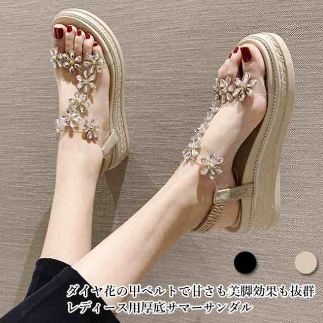 サンダル 厚底 レディース ウェッジソールサンダル 花柄 サマーサンダル 厚底サンダル 美脚 ダイヤ 靴 夏 婦人靴 ウェッジソール くつ