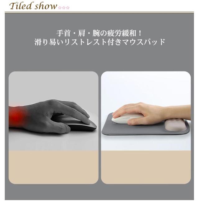 | 手首への疲労を軽減するリストレスト付きマウスパッド 手首・肩・腕の疲労緩和!滑り易いリストレスト付きマウスパッド クッション部分は18mmの厚さで手首に心地よいフィット感。長時間の作業を和らげます。 ソフトな操作面はマウスが滑りすぎず静かな操作感が得られます。 滑り止め加工の裏面、テーブルにぴったりと吸着すると同時に、ズレや移動を防ぎます。 ストレスのない安定したサポートが可能です。会社でも自宅でもよく使われた必要品です。 | |