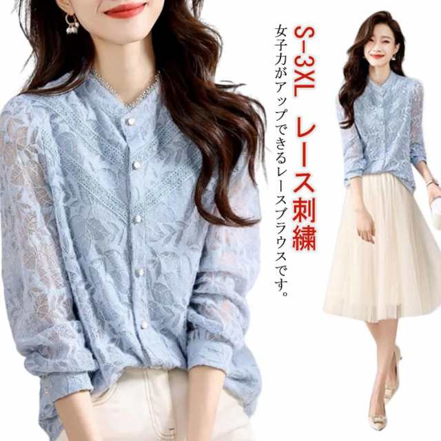 ブラウス レディース レース刺繍 シャツ 長袖 トップス 透け感 韓国風 大人 上品 通勤 OL ゆったり シースルー 40代 春夏秋新作 オシャレブラウス オフィスブラウス シャツ カジュアル 通勤 デート お出かけ 大きサイズ 前開き 30代 50代 2023新作