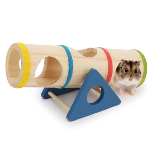 ・絶妙な設計:木製のトンネルにはハムスターが出入りするための7つの穴があり、穴を掘るのが大好きな傾向を満たし、ハムスターの生活をより快適にします。シーソーとして遊ぶこともでき、運動不足の問題を効果的に解決し、不安やストレスを和らげます。