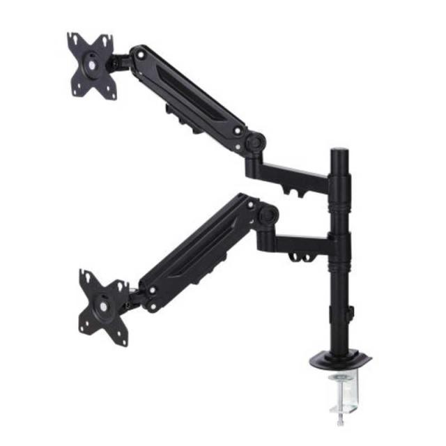 40インチサイズまでのモニターに対応する、ロングアームのメカニカルスプリング式ダブルモニターアームです。