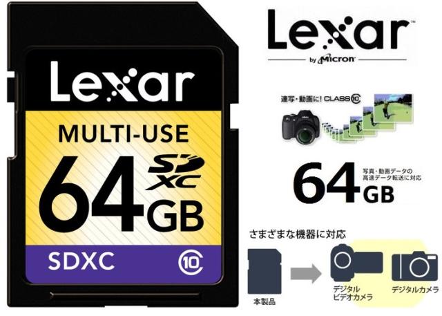 レキサー SDXCカード 64GB Class10対応 高速SDXCメモリーカード 国内正規品 Lexar LSD64GABNLC10 パルク品 MULTI-USE マルチユーズ