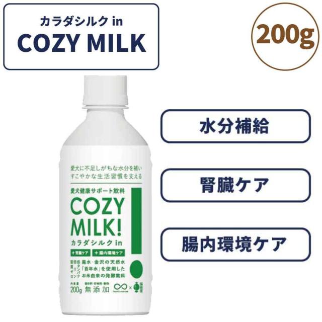 健康サポート飲料 コージーミルク カラダシルク in 200g 犬 米麹 発酵 甘酒 水分補給 腎臓ケア 腎ケア 腸内環境ケア ニオイ対策 国産 無添加 百年水 食物繊維 オリゴ糖 液体 ふりかけ トッピング 飲む点滴 簡単 安心 安全 シルクフル シルキャット COZY MILK