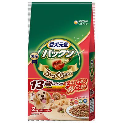 ユニチャーム 愛犬元気パックン13歳以上用ビーフ・ささみ・緑黄色野菜・小魚入り2.0Kg
