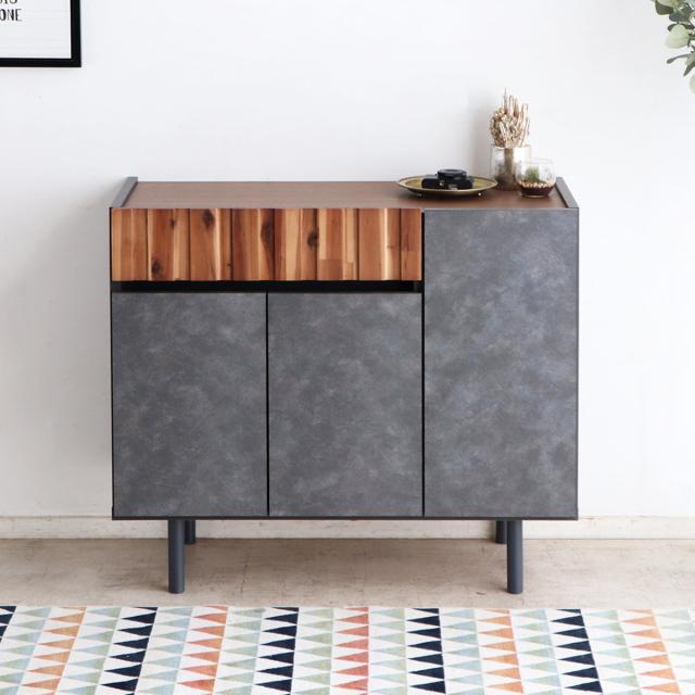 サイドボード 幅89.4cm コンクリート調 アカシア材 モダンデザイン ( ラック 棚 リビング収納 ディスプレイ リビングボード 家具 可動棚 モルタル調 スタイリッシュ )