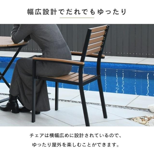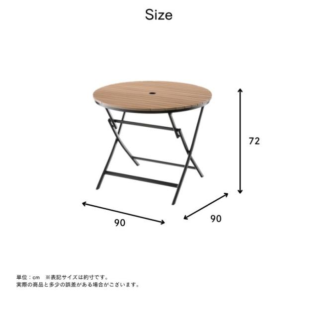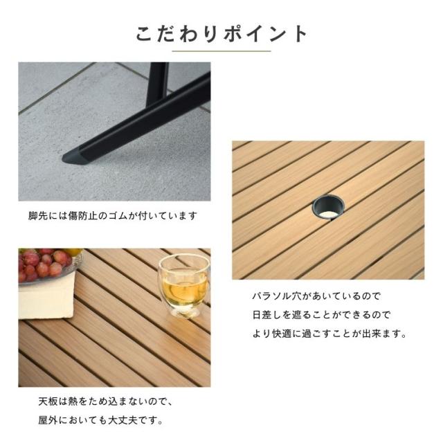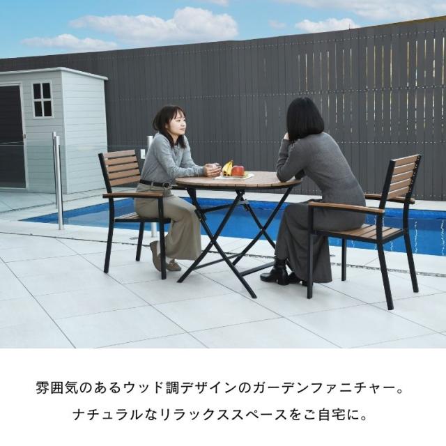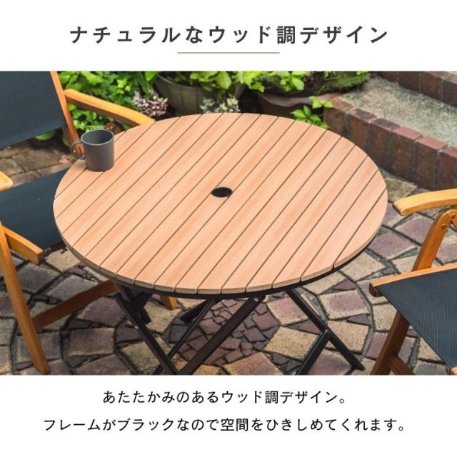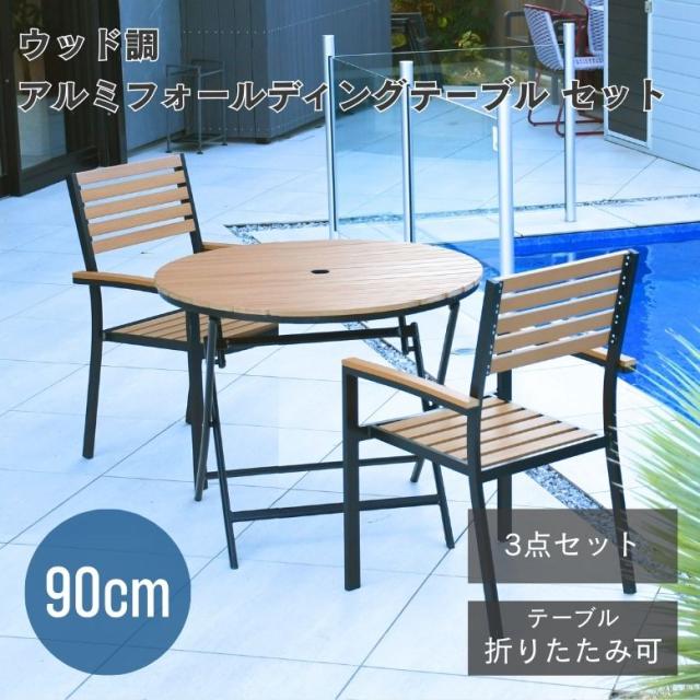 ガーデン チェア テーブル ガーデンテーブルセット ウッド調 パラソル穴 ベランダ 屋外 庭 ウッド調アルミフォールディングテーブル 丸形 3点セット
