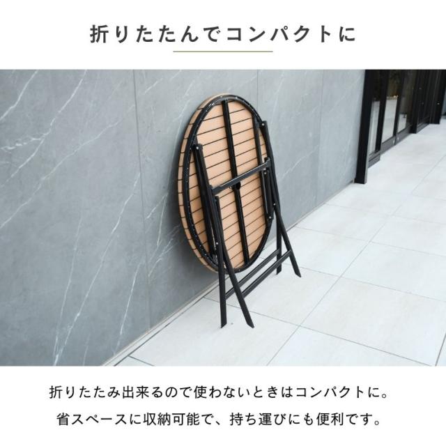 ウッド調アルミフォールディングテーブル 丸形 3点セット