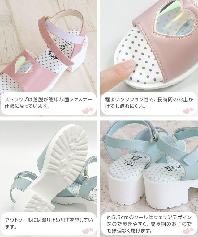 トレンドの厚底デザインに、オーロラ素材のハートマドがかわいらしいサンダルです♪