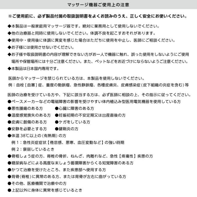 - プレゼントで購入し、大変喜んでいました。毎日使ってくれていて、足の疲れが取れると喜んでいます。強いていうなら少し稼働時間が短いのでもう少し長くマッサージ出来たら嬉しかったと思います。