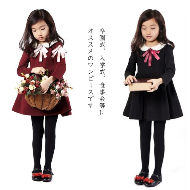 子供ワンピース フォーマル 入学式 卒園式 ワンピース キッズ 子供服フォーマル 子供服 女の子 こども服 通園 通学 子ども服 長袖ワンピース ブラック ワインレッド キッズワンピース 長袖ワンピース 110 120 130 140 子ども服 女の子 発表会 結婚式 お受験