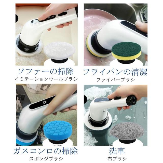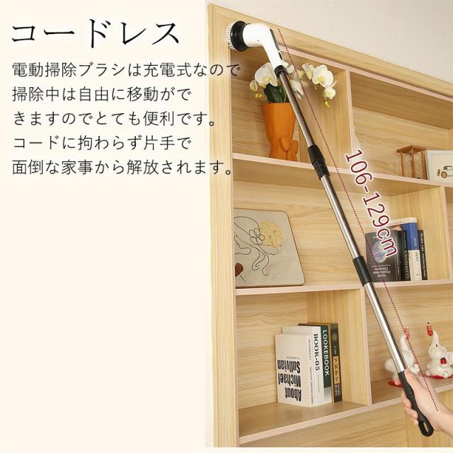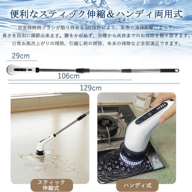 電動ブラシ 掃除ブラシ コードレス 電動バスポリッシャー パワフル 高速回転 USB充電式 ロッド長さ調節可 防水 浴室掃除 風呂掃除 替えブラシ付き