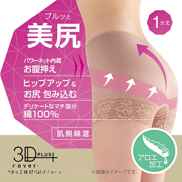 【アウトレット】アツギ スリーディーカバー 綿混 光沢 1分丈ショーツ 深履きショーツ M | お腹押さえ ヒップアップ 深ばき ショーツ 80897AS ATSUGI 3D COVER