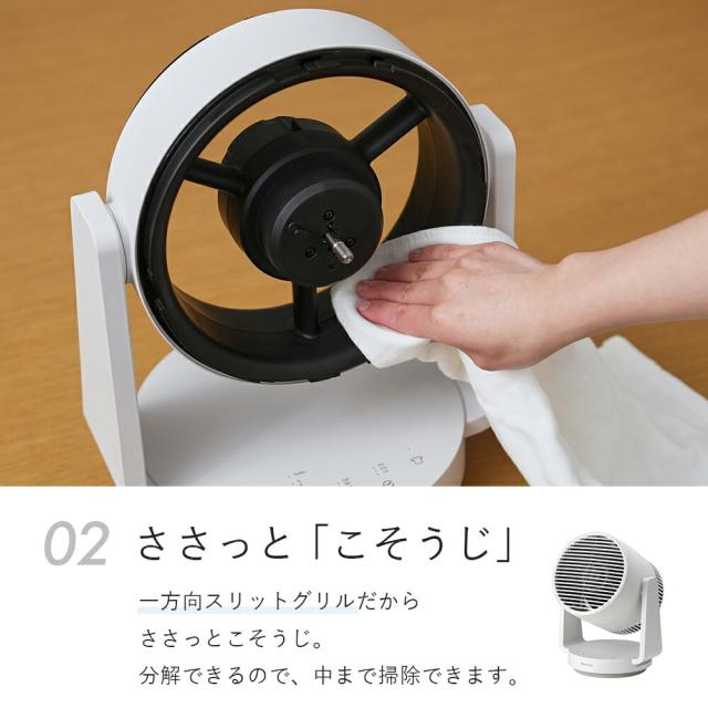 DCモーター搭載で、最小風量は静音27dB。扇風機のようなやさしい風も体感できます。