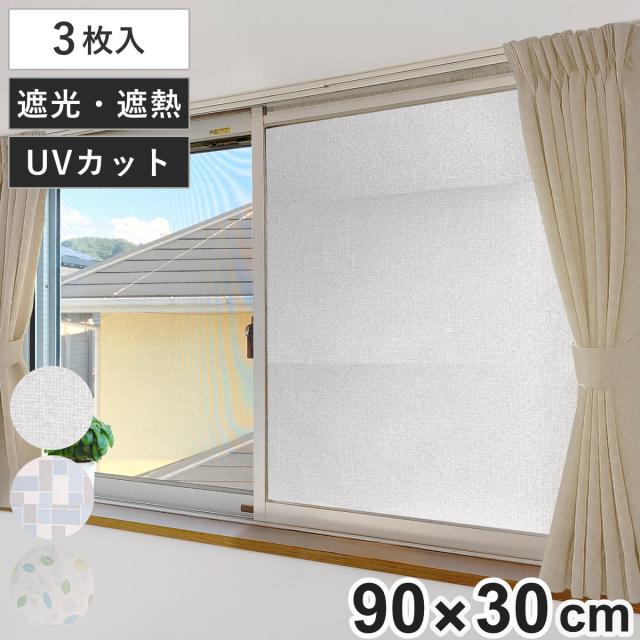 窓貼りシート 窓用 遮熱もできる 強力 遮光シート 90×30cm 3枚組 ( シート 窓 遮光 遮熱 UVカット マグネット 貼ってはがせる 目隠しシート ガラス 貼る 窓シート 目隠し 防犯 簡単設置 ガラスに貼るフィルム 省エネ 節電 エコ )
