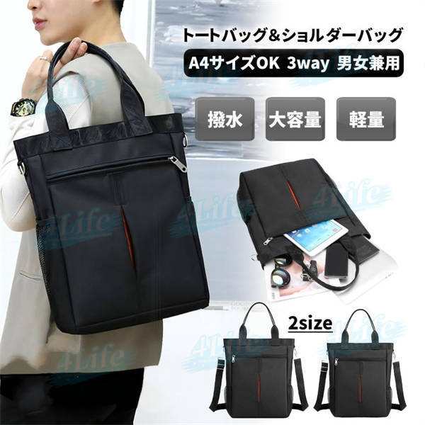 トートバッグ メンズ ビジネス 縦長 a4 大容量 2way レディース ポケット多い ナイロン ショルダーバッグ 男女兼用 ユニセックス シンプル カジュアル