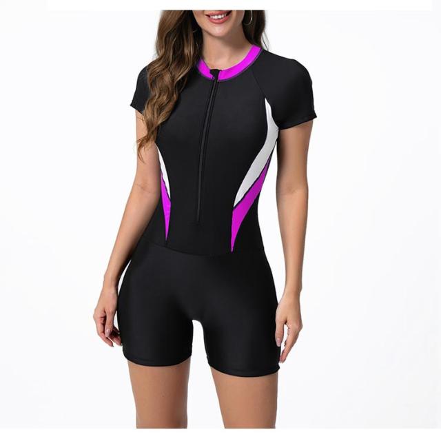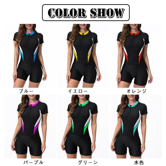 フィットネス水着 オールインワン レディース 水着 フィットネス 練習用 トレーニング 半袖 ジップアップ 女性 体型カバー 運動用 ジム プール 海水浴 おしゃれ 着痩せ ママ水着 30代 40代 50代 スイムウェア 水泳 【送料無料】