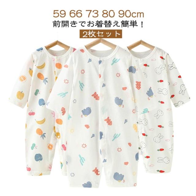 | 【2枚セット】 【59 66 73 80 90cm】 前開きでお着替え簡単! 肌にやさしい薄手コットン素材。 | |