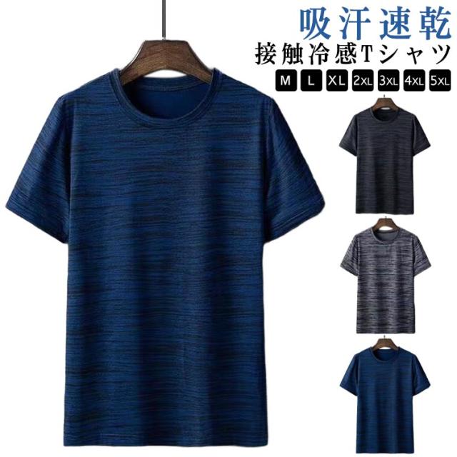 速乾Tシャツ メンズ tシャツ 半袖 吸汗速乾 接触冷感 半袖tシャツ 薄手 春 夏 涼しい ドライtシャツ ラウンドネック クルーネック トップス カットソー 冷感 クール ウォーキング ジョギング 大きいサイズ スポーツウェア 送料無料