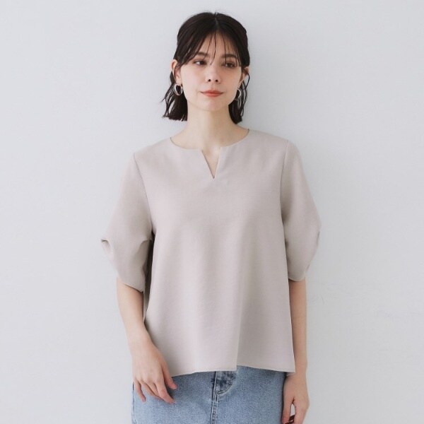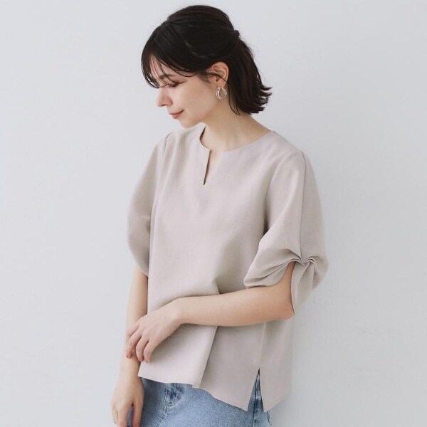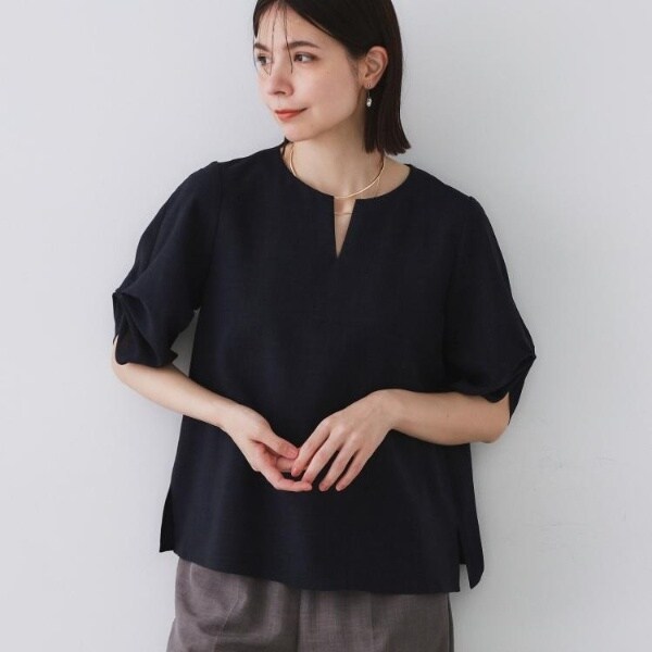 オペークドットクリップ(OPAQUE.CLIP)/リネンライクキーネックタックスリーブブラウス【洗濯機洗い可吸水速乾接触冷感】