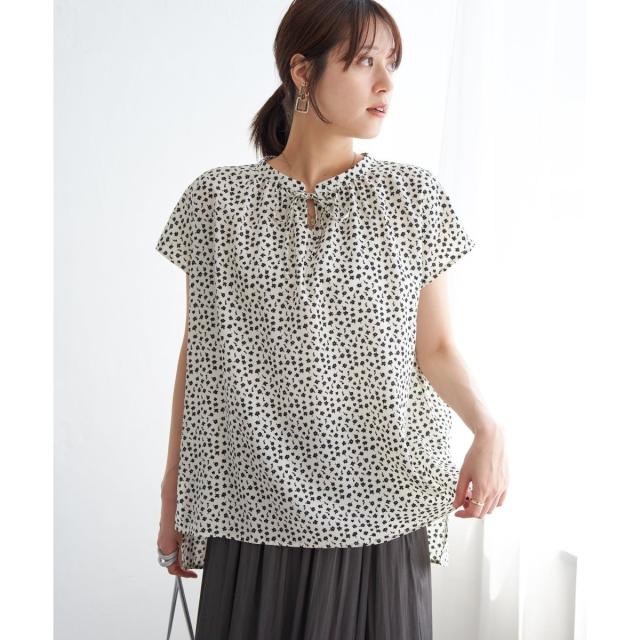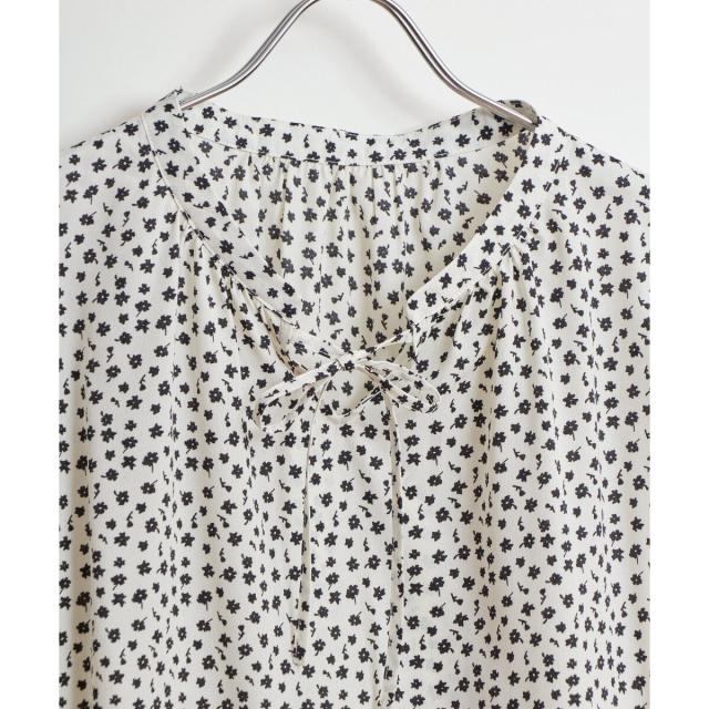 襟元にリボンが付いたデザインブラウス。