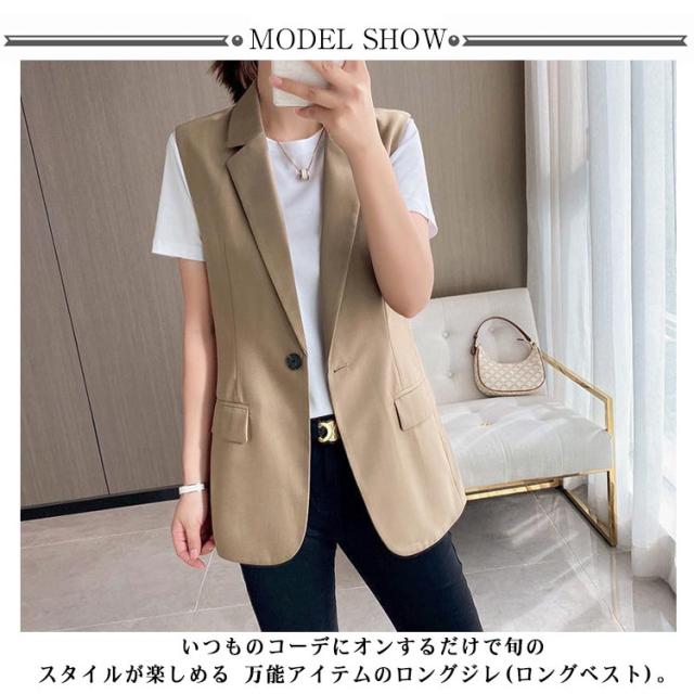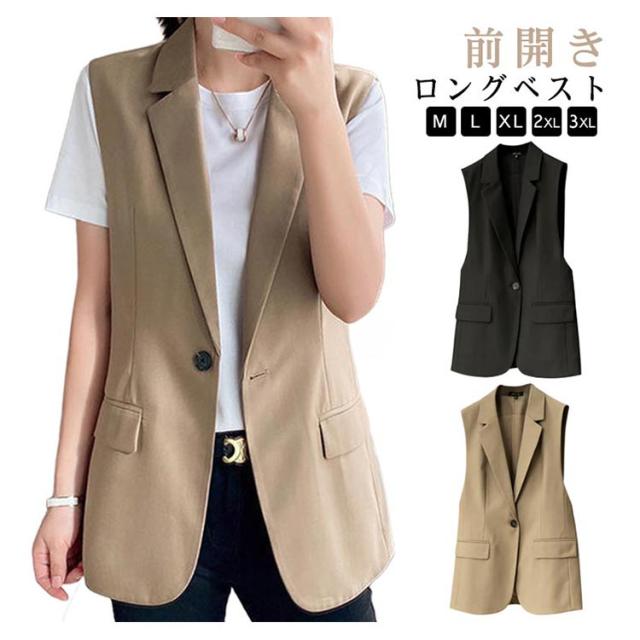 羽織り ベスト 春 きれいめ キレイめ ロングベスト フォーマル シンプル 重ね着 ジレ レディース フォーマル 夏 スーツノースリーブ 前開き 無地 ロング カジュアル ゆったり レイヤード フェミニン テーラードベスト OL 通勤 仕事 20代 30代 40代