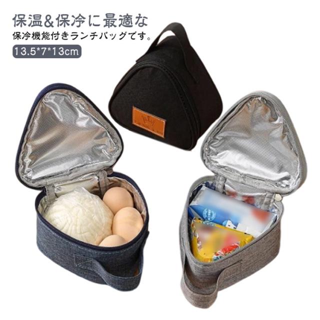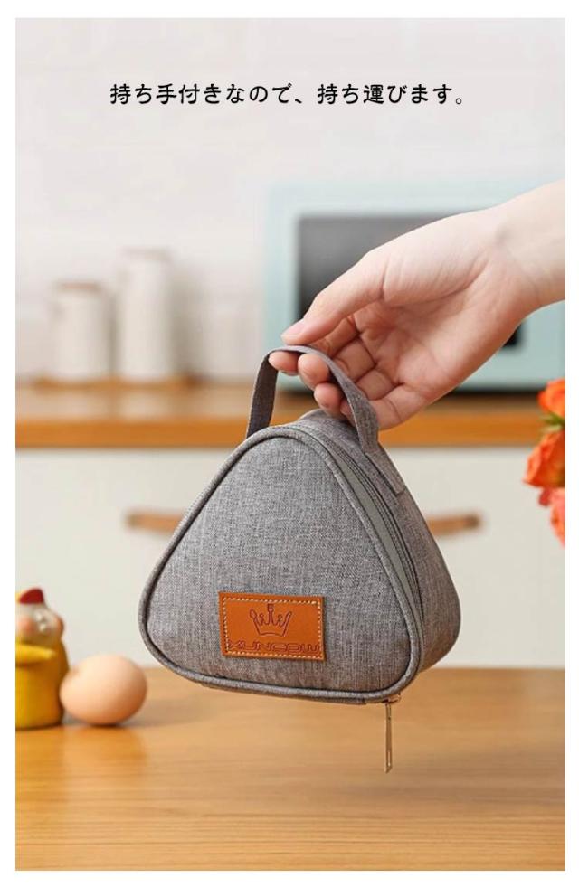 お弁当グッズ キッチン用品 保冷 アルミ素材 おにぎりポーチ おにぎりケース ランチバッグ 三角型 おにぎり型 お弁当袋 ファスナー 保温 持ち手付き 防水 携帯用 持ち運び 通勤 通学
