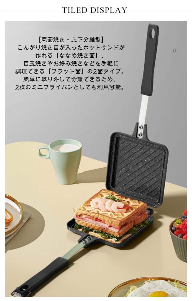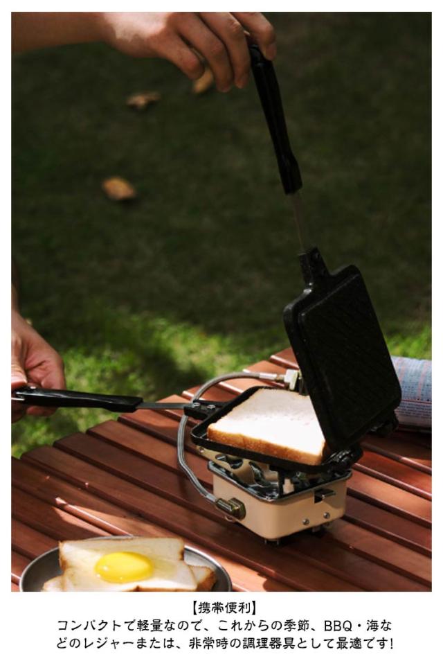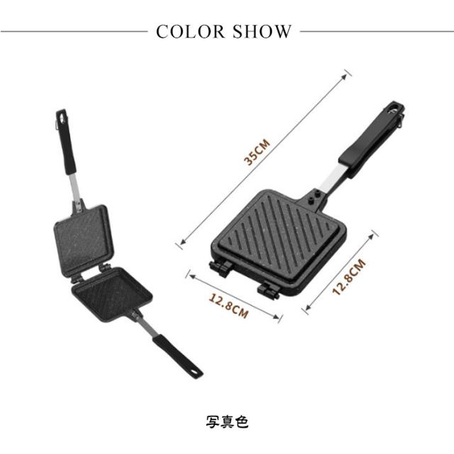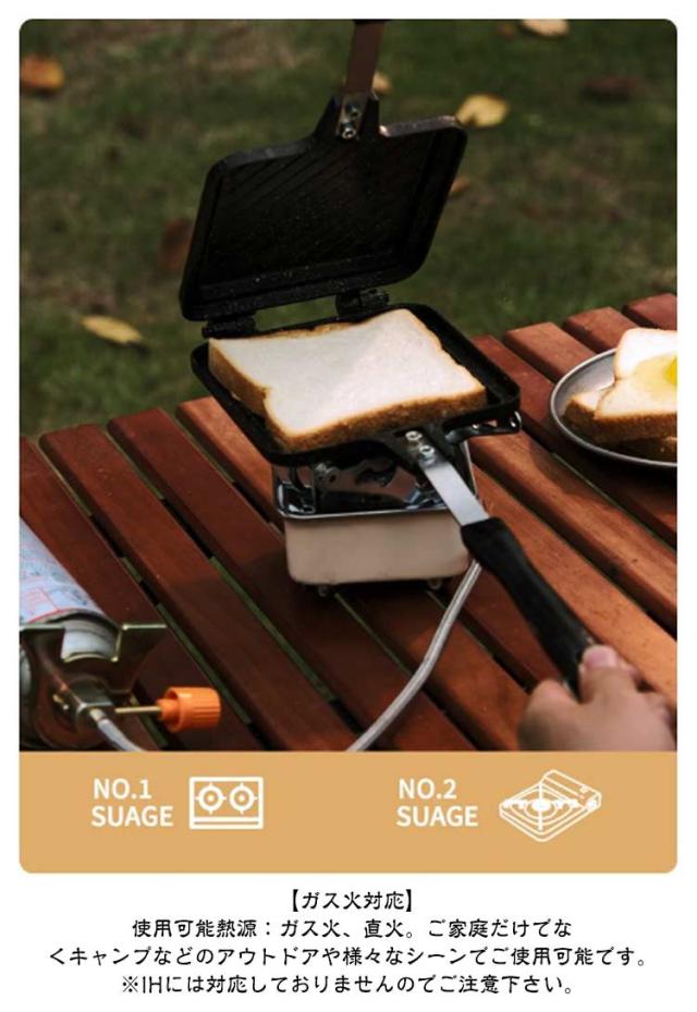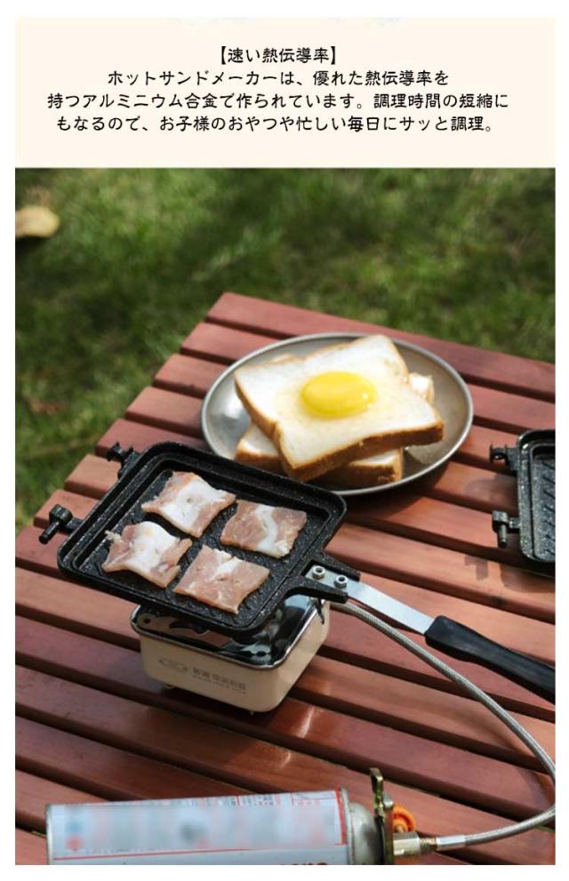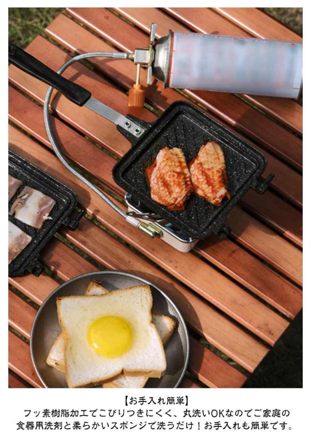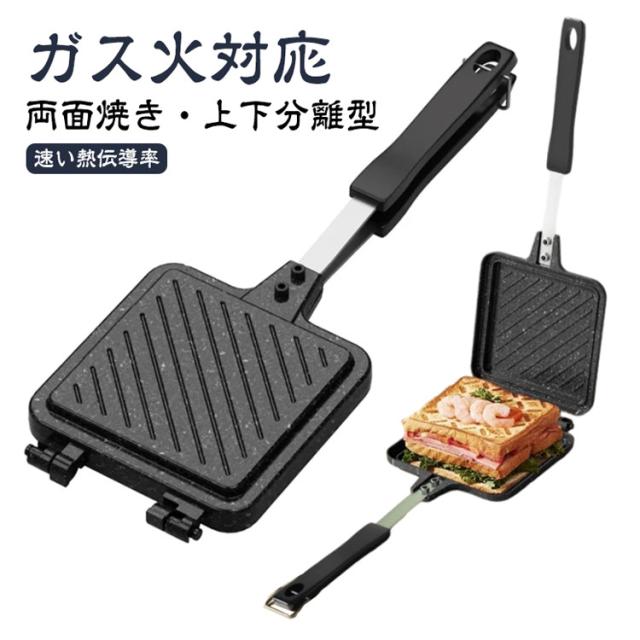 ホットサンドメーカー ガス火専用 直火対応 ホットサンドメーカー 両面焼き IH対応不可 軽量 家庭用 フライパン キャンプ アウトドア 上下分離型 調理器具 料理用 クッキング お手入れ簡単 取り外しOK