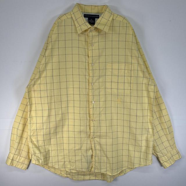 古着 トミーヒルフィガー TOMMY HILFIGER 長袖シャツ 胸ポケ ロゴ 刺繍 大きいサイズ XL イエロー チェック メンズ