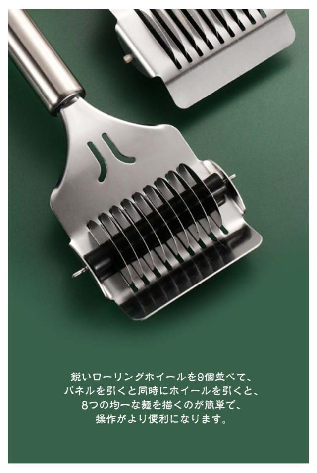 | 家庭で手軽にうどん、ラーメンなど作る!家族と一緒に麺づくりを楽しみましょう! 高品質のステンレス鋼で耐久性があり、安全で健康的です。 鋭いローリングホイールを9個並べて、パネルを引くと同時にホイールを引くと、8つの均一な麺を描くのが簡単で、操作がより便利になります。 人間工学に基づいたハンドルはとても快適に使用できます。 使い終わったらぶら下げて収納でき、スペースを使わず、とても便利です。 家庭で中華麺、生ラーメン、そば/生パスタ/中華麺などを作れます。 | |