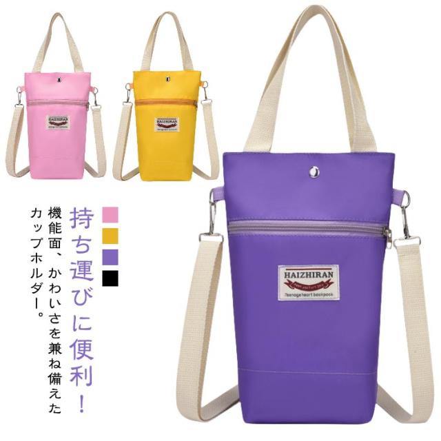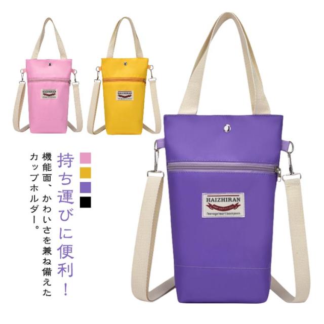 | 持ち運びに便利!機能面、かわいさを兼ね備えたカップホルダー。 ハンドル付きで単体でも、他の荷物と一緒でも持ち運びしやすい! ペットボトルや折りたたみ傘など水気があるものをサッとしまえてバッグに一緒に入れても荷物が濡れることはありません。 外出時はもちろん、通勤・通学のときにも使えてデイリー使いしたくなる4カラーを揃えました。 財布・キーケース・ハンカチ・リップ・ハンドクリームなど見た目以上に収納力は抜群。 旅行・街歩き・アウトドア・野外フェスなど、使い方は自分次第。 | |
