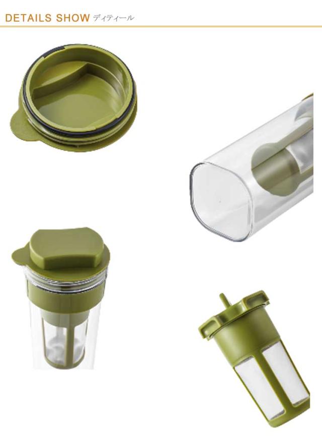 | ・手軽に美味しい水出し珈琲が作れる珈琲ボトル。 ・クリアな容器で中身が確認しやすい。 ・広口開口で中まで洗いやすい。 | |