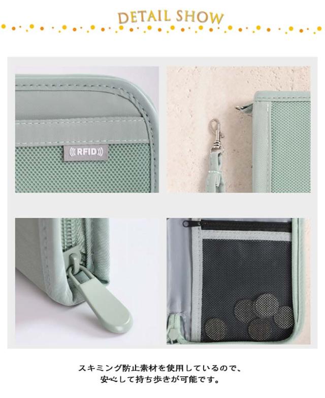 | 薄型&軽量設計のトラベルポーチが登場しました。 パスポートとカード、必要最小限のものだけをスマートに持ち歩けるサイズ感。 スキミング防止素材を使用しているので、安心して持ち歩きが可能です。 ジッパー付きなので、落下する心配もありません。パスポート、航空券、イヤホンを収納できます。 長財布と同じサイズ感なので、バッグに入れても邪魔にならず、持ち歩きにとても便利です。 メンズ、レディース共にユニセックスで使え、お子様、学生さん、大人の方まで幅広く使えます。 シンプルなデザインなので、様々なコーデに対応可能! | |