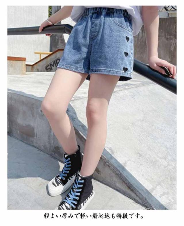 短パン ショートパンツ 140 デニム 130 キッズ 通園 110 デニムパンツ ジュニア 子供服 150 160cm 女の子 100 120 ジーンズ ボトムス カジュアル 無地 ハート柄 シンプル 通学 デニム ガーリー かわいい 春 夏