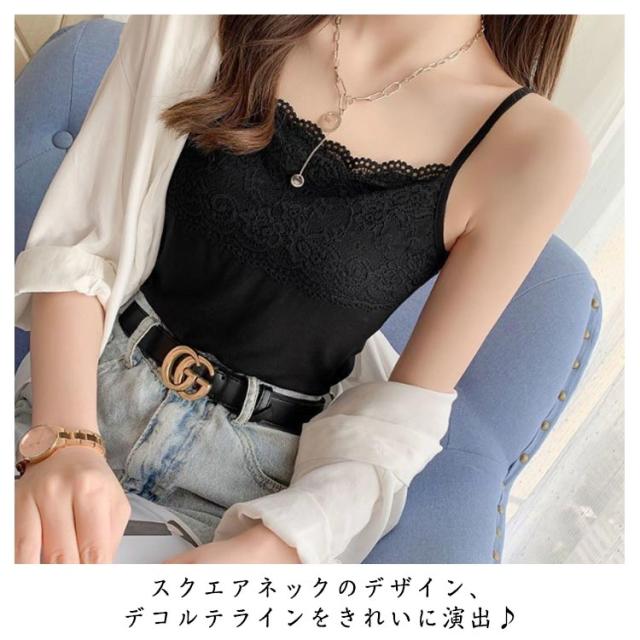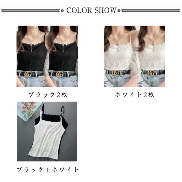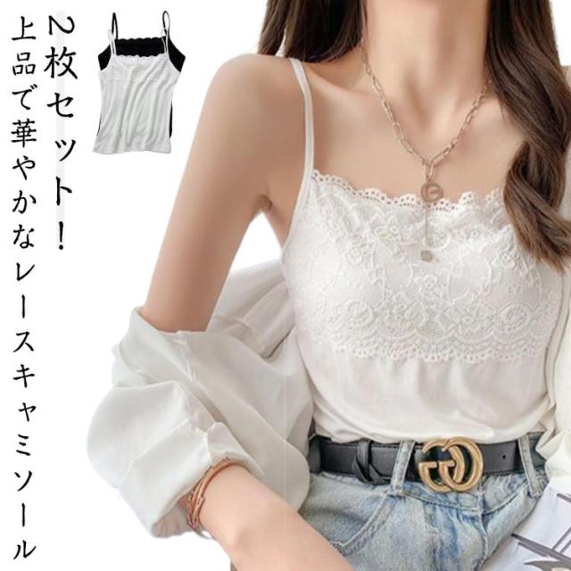 きれいめ 透けない かわいい 細ストラップ キャミソール レースキャミソール 胸元レース レディース 2枚セット 肌着 レース スクエアネック かわいい レースキャミ インナー 下着 大きいサイズ おしゃれ 黒 白 インナーキャミ トップス