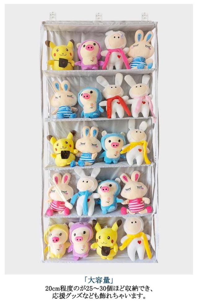| 【 2個組5/6段 】【 ぬいぐるみウォールポケット】 【 いつでも自分の「推し」を眺めることができるようになり 】 「すっきり収納」いつでも自分の「推し」を眺めることができるようになり、毎日見ていたいのです 「埃や虫をしっかり防ぎる」通気性の良いコットン生地を採用して、湿気やカビにも強く、質感も良く、掃除が簡単になります 「大容量」20cm程度のが25〜30個ほど収納でき、応援グッズなども飾れちゃいます 「スペースを広げ」密閉スペースで、左右両方向に取り出せので、使いやすい。 | |