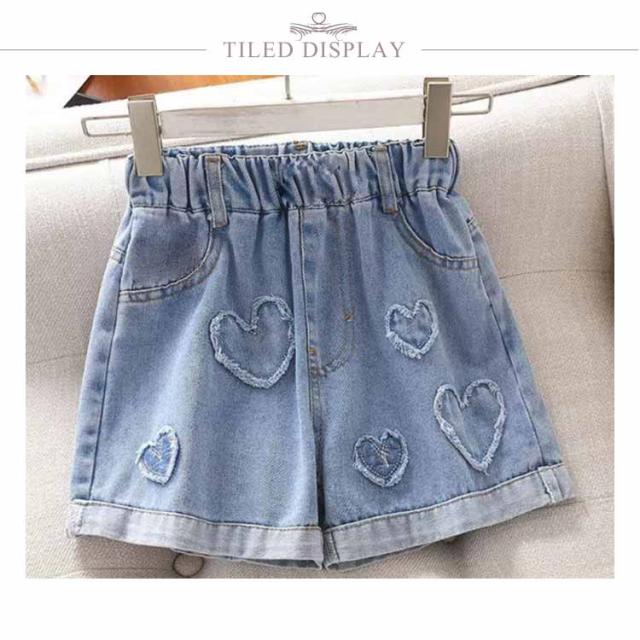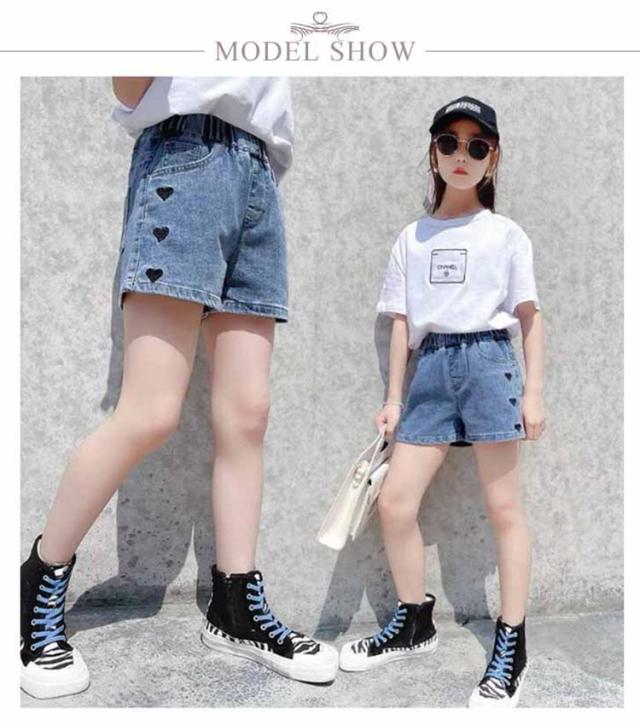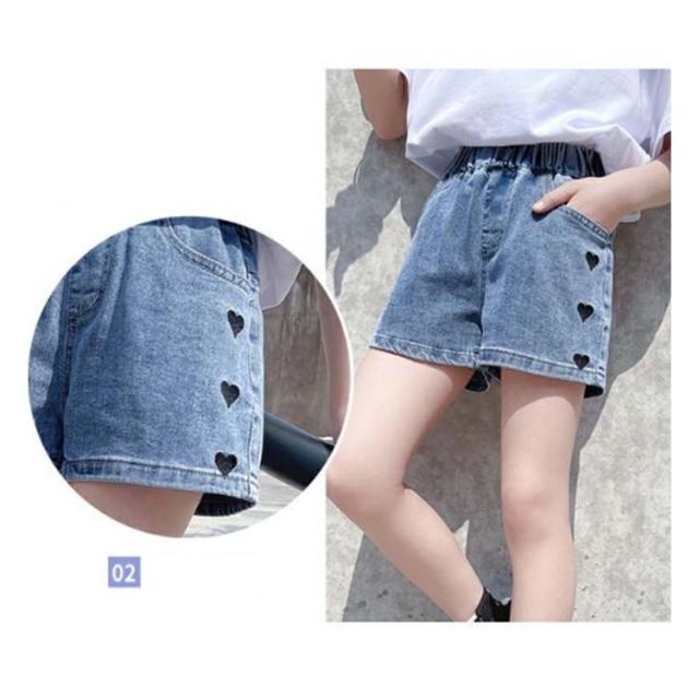 デニム 110 ショート丈デニムパンツ 120 160cm デニムパンツ 通学 100 デニム 140 キッズ 150 女の子 ジュニア 短パン 子供服 ジーンズ ボトムス 130 無地 ハート柄 通園 シンプル カジュアル ガーリー かわいい 春 夏