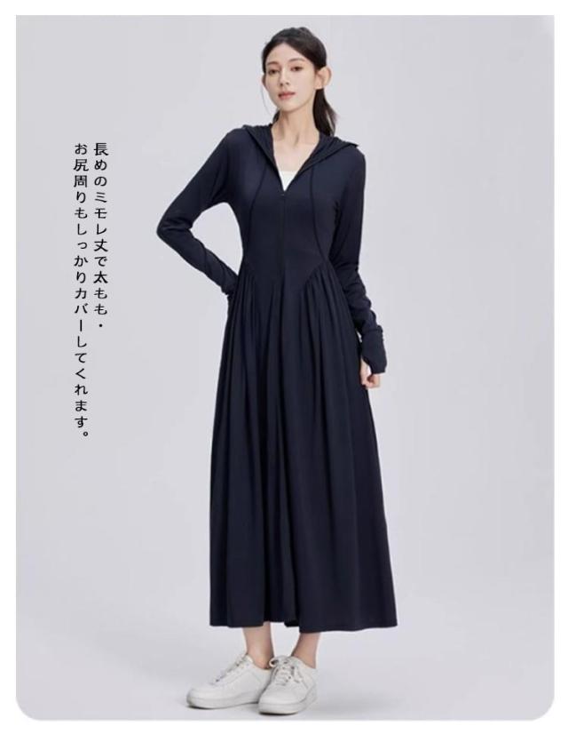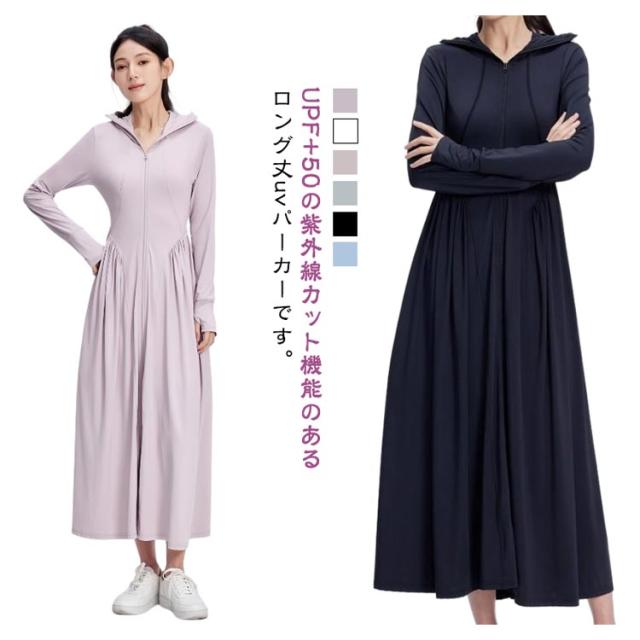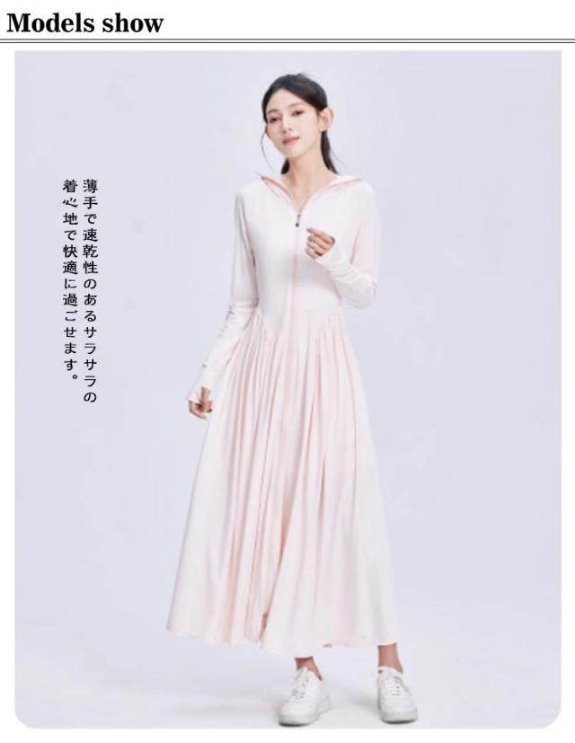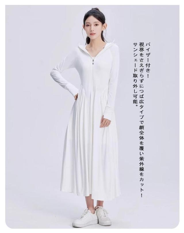 レディース 超ロング 吸水速乾 ラッシュガード 長袖 接触冷感 サンバイザー付き ワンピース パーカー つば広 UVカット トップス パーカー 全身カバー 紫外線対策 日焼け止め UPF50+ 涼しい 軽量 大きいサイズ 通勤 釣り UVカット アウトドア 海 プール