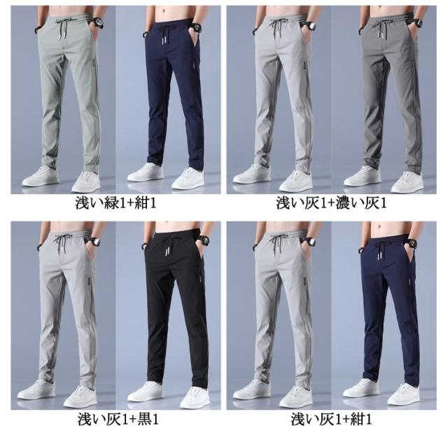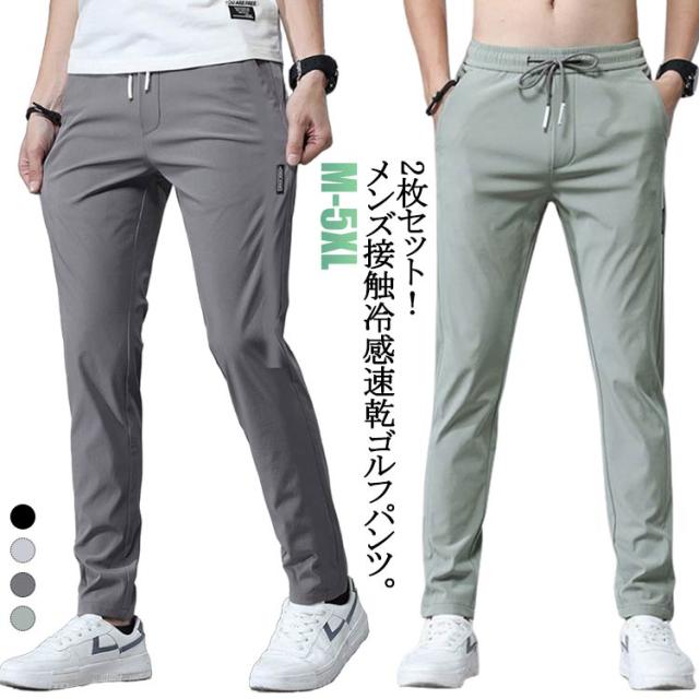 ゴルフパンツ 無地 2枚セット!ゴルフウェア アイスシルク 2枚セット!ゴルフウェア 接触冷感 ストレッチパンツ スポーツパンツ 冷感パンツ 軽量 涼しい メンズ ロングパンツ 薄手 春 夏 通気 吸水速乾 チノパン 清涼 涼感 ズボン