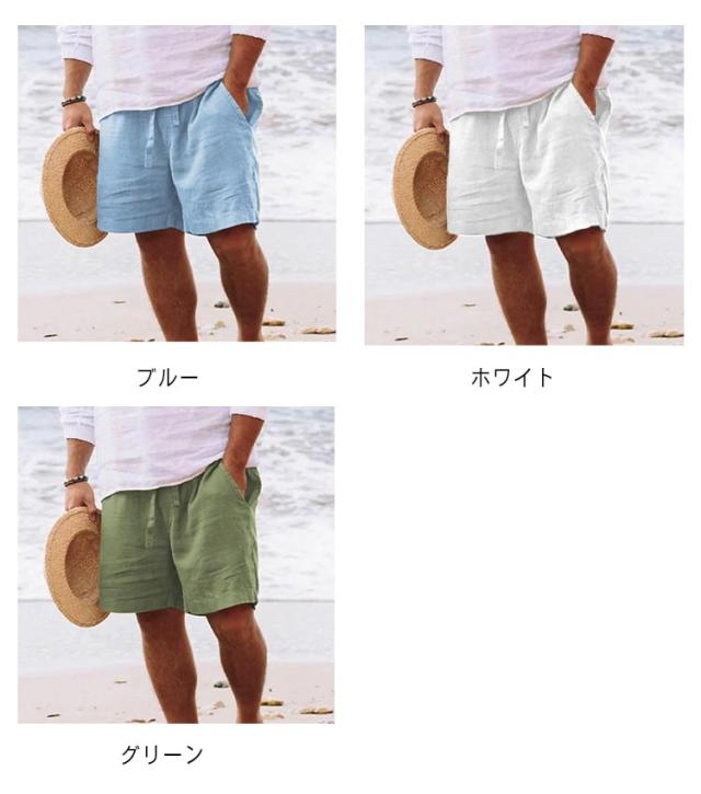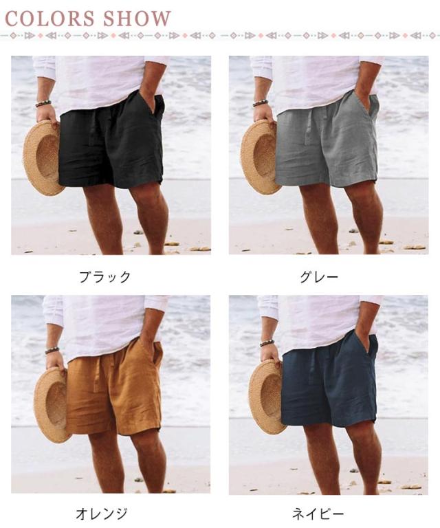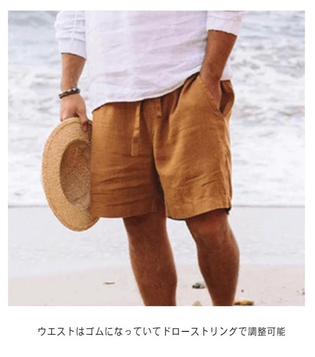 綿麻 ショートパンツ 夏 パンツ 綿麻 男 ズボン リネンパンツ 半ズボン ハーフパンツ メンズ 麻パンツ ショート ハーフパンツ ウエストゴム カジュアル サマー ショート丈 イージーパンツ 無地 短パン 部屋着 薄手 通気性 アウトドア 部屋着 ルームウェア