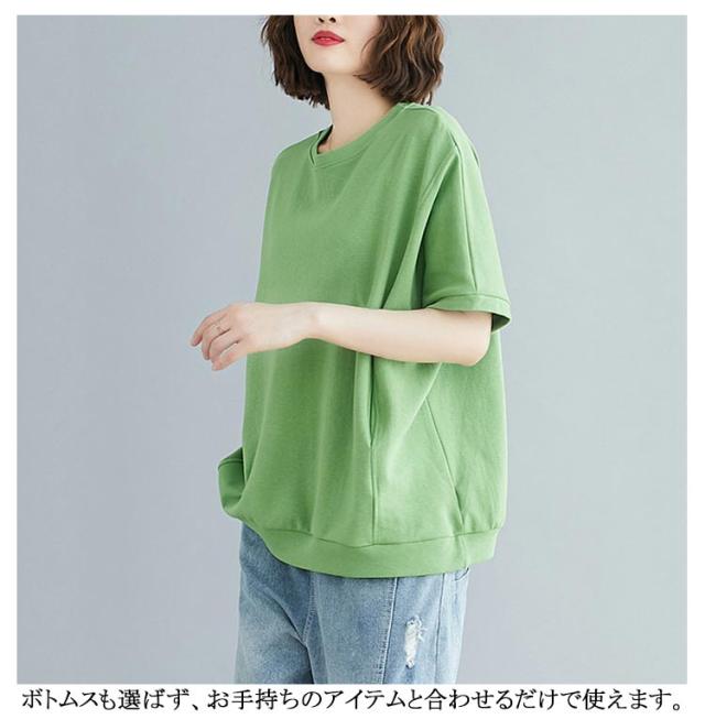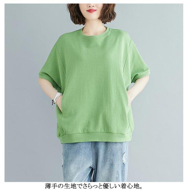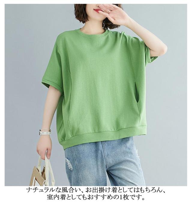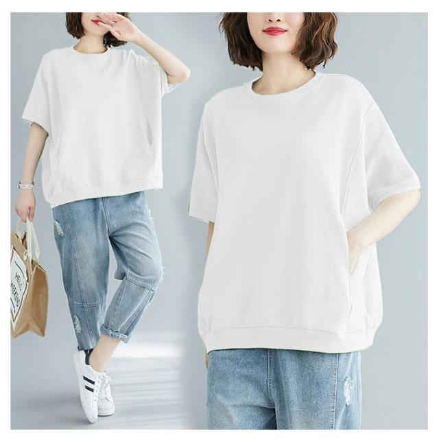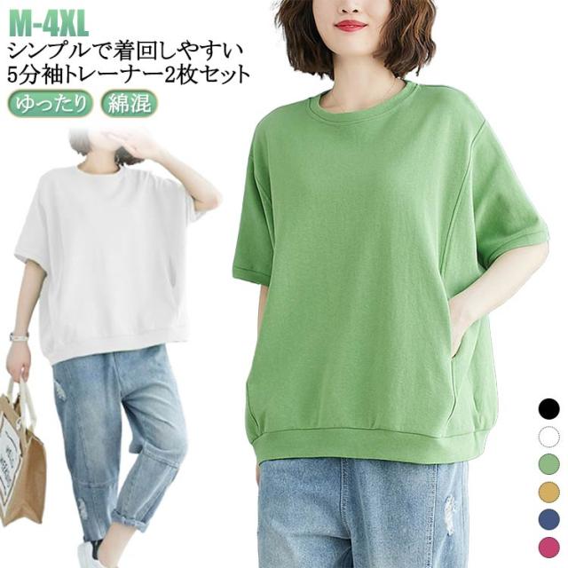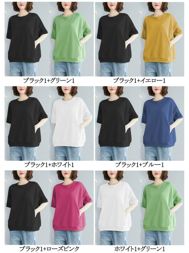半袖 トップス カジュアル レディース ゆったり tシャツ ロング丈 2枚組 カットソー Tシャツ 無地 シンプル おしゃれ 綿混 tシャツ トレーナー 半袖 スウェットシャツ レディース カットソー 無地 ゆったり シルエット