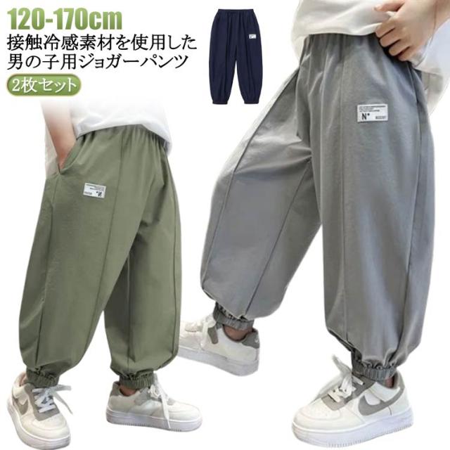 | 2枚セット!120-170cm!接触冷感素材を使用した男の子用ジョガーパンツ。 ひんやり涼しい接触冷感なので、夏の大活躍は間違いなし! ウエスト部分は総ゴム仕様で動きやすく、着脱もラクラクです♪ ゆとりのあるシルエットとサラリとした素材による清涼感が快適な着心地を演出します。 遊びや通学など、夏のデイリーユースにも大活躍です◎ | |