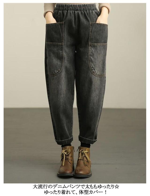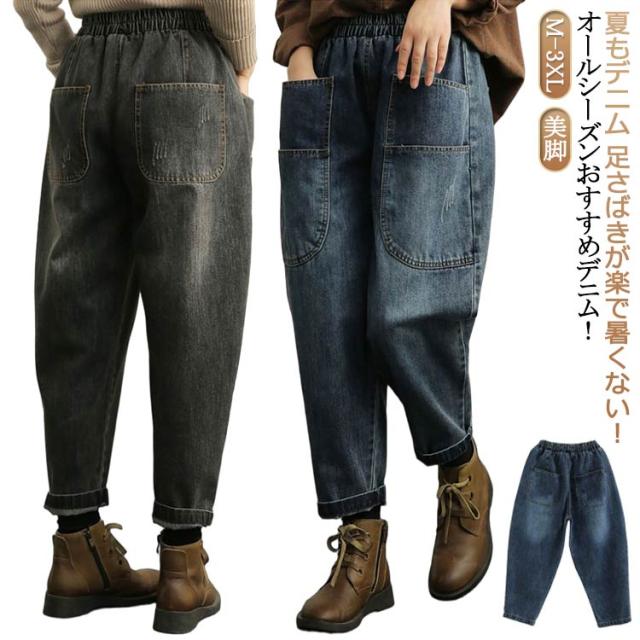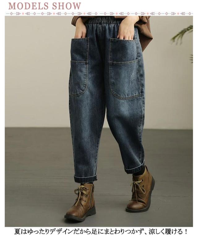 デニムパンツ デニムサルエルパンツ 体型カバー ワイドパンツ コクーンコクーン ジーンズ 薄手 ゆったり サルエル パンツ レディース ウエストゴム ロング丈 ボトムス サルエルパンツ デニム サルエル 大きいサイズ 森ガール 個性派 カジュアル