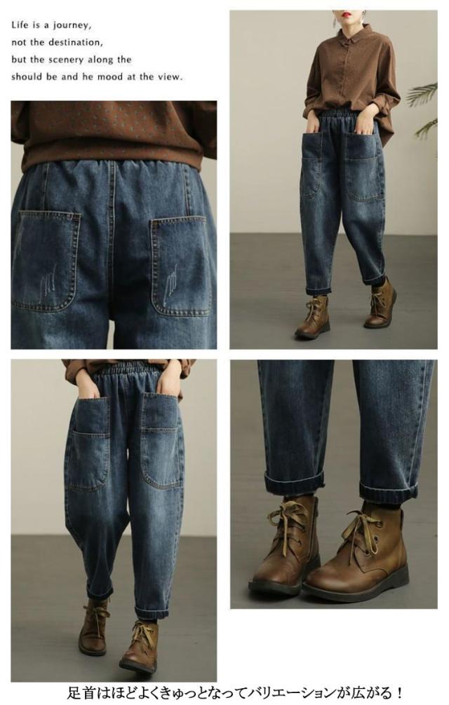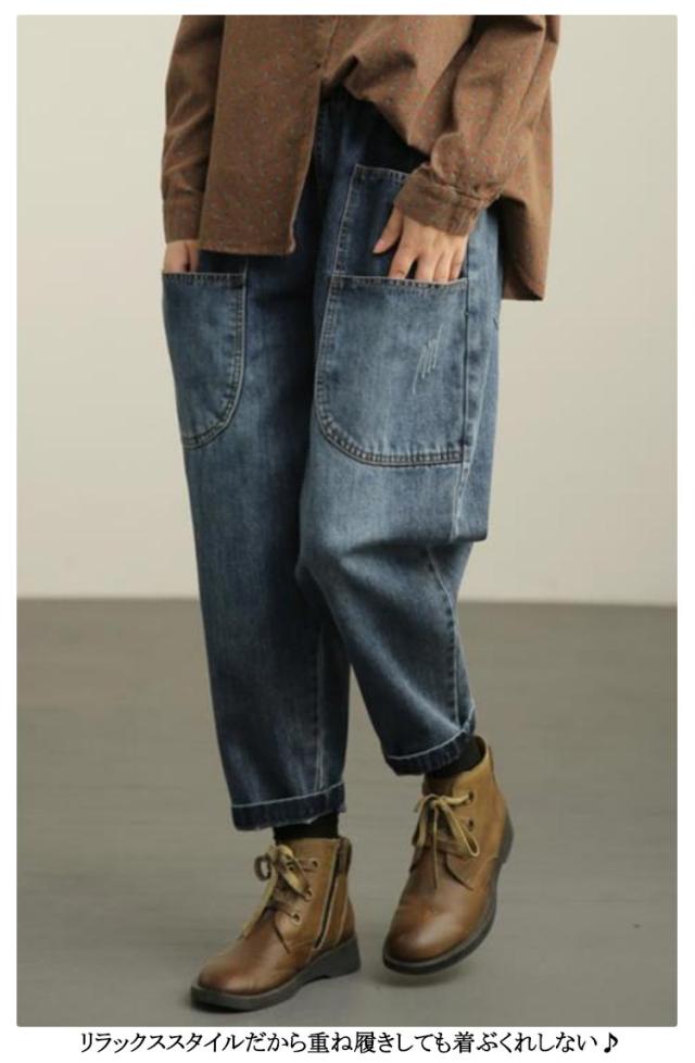 | 夏もデニム 足さばきが楽で暑くない!オールシーズンおすすめデニム! 夏はゆったりデザインだから足にまとわりつかず、涼しく履ける! 寒い秋冬はゆったりしているからこそ、タイツやレギンスの重ね履きも余裕♪ リラックススタイルだから重ね履きしても着ぶくれしない♪ ウエスト部分はギャザーゴムで穿き心地もバツグン♪ 大流行のデニムパンツで太ももゆったり☆ゆったり着れて、体型カバー! 足首はほどよくきゅっとなってバリエーションが広がる! | |