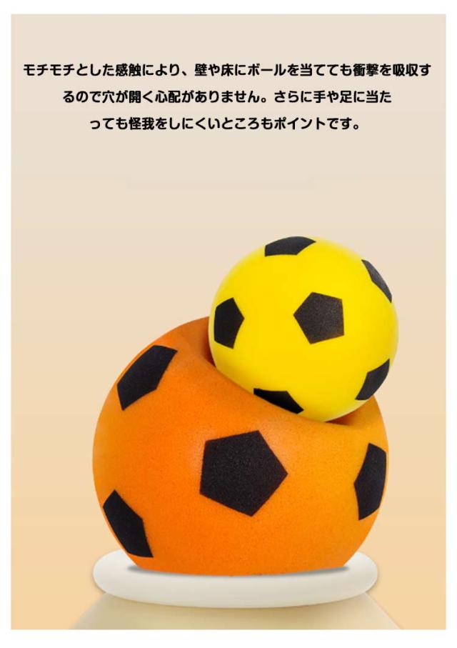 | 4サイズ! 12.7cm/15cm/18cm/20cm 自宅でサッカーの練習が出来るポリウレタン製ボールです。 モチモチとした感触により、壁や床にボールを当てても衝撃を吸収するので穴が開く心配がありません。さらに手や足に当たっても怪我をしにくいところもポイントです。 静音設計のボールはバウンドや壁当て練習の際に、ノイズを最小限に抑え、近隣への騒音を気にすることなくお使いいただけます。自宅やジムといった室内での練習におすすめです。 このボールさえあれば悪天候で外に出られない日でも、室内で身体を動かすことができます。家族でのコミュニケーションツールとしてもお使いいただけます。表面の汚れが気になる際は、水洗いで簡単にお手入れ可能です。 自宅やジムといった室内での練習におすすめです。この静かなボールでゲームをレベルアップさせ、室内遊びに最適で、楽しいトレーニングや練習活動でスキルを磨きます。 | |