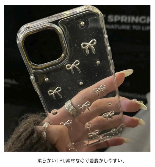 iPhone16 15 iphone13 ケース ケース 16promax ケース iPhone16pro Plus iphone14 12 16plus iphone11 pro iPhone15 iphone ケース Pro Max 14 ケース ケース ミニリボン パール 透明 おしゃれ 韓国 可愛い クリアケース きらきら ラメ入り シルバー