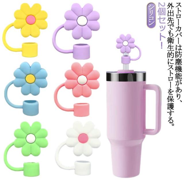 ストローキャップ ストローカバーキャップ かわいい 花柄 キャップ 2点セット防塵 スタンレーカップ用 ストローカバー かわいいストローカバー シリコンストローキャップ スタンレーカップストローアクセサリー