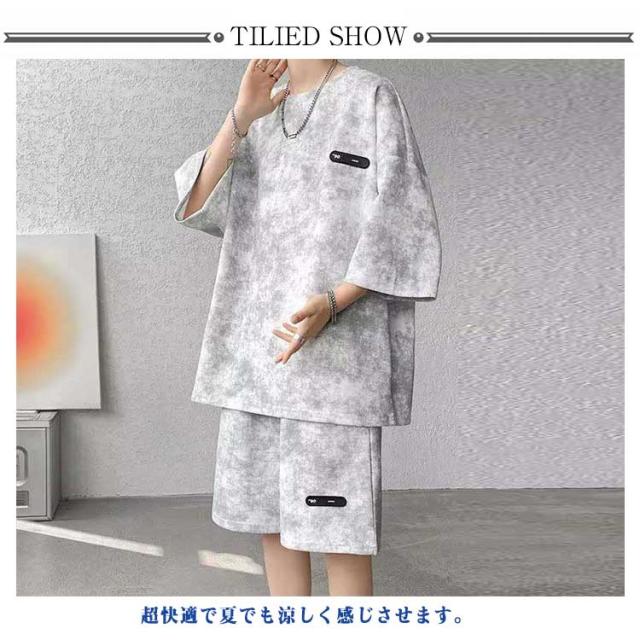 夏 タイダイ染め タイダイ染め セットアップ 七分袖 薄手 Tシャツ 2点セット 上下セット スウェット ジャージ おしゃれ ハーフパンツ tシャツ 半ズボン ルームウェア 部屋着 ゆったり 大きいサイズ 無地 スポーツウエア カジュアル おしゃれ 通気性