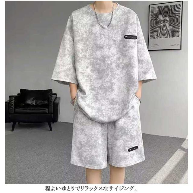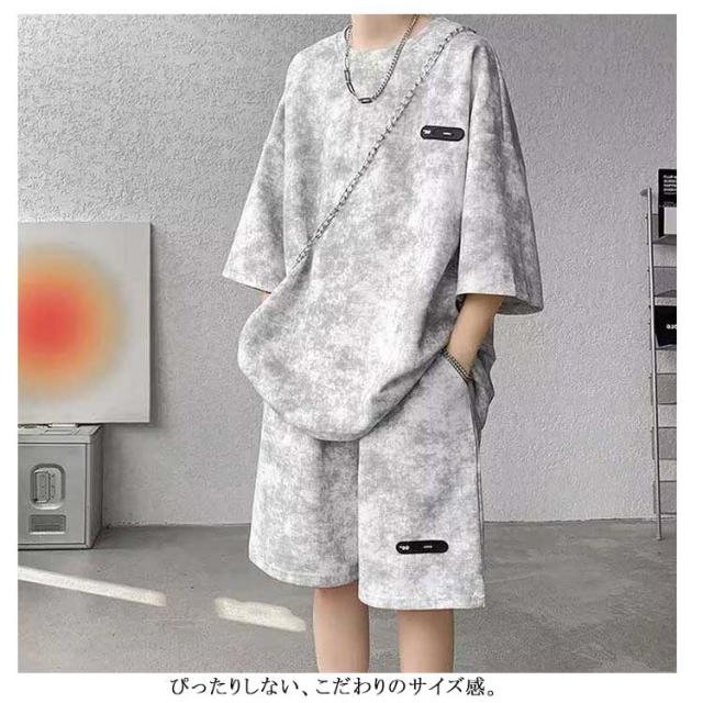 | 通気性に優れているタイダイ染め生地で夏に人気な半袖Tシャツ+ハーフパンツ 2点セット。 超快適で夏でも涼しく感じさせます。 程よいゆとりでリラックスなサイジング。ぴったりしない、こだわりのサイズ感。 | |