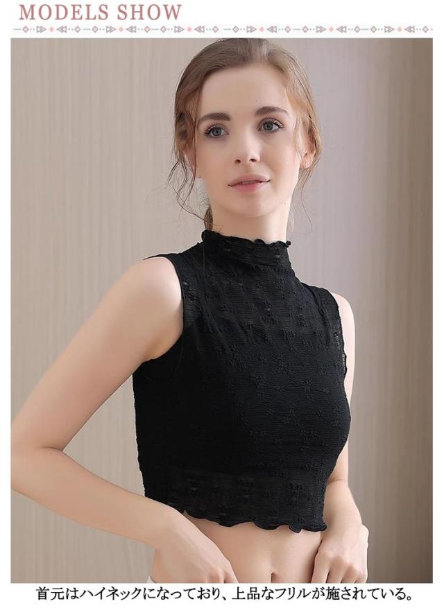 シースルー タートル レース 付け襟 フリルネック タートルネック レースハイネック ハイネック カットソー レイヤード 重ね着 インナー レディース シースルー ノースリーブカットソー つけ襟 つけえり 女性